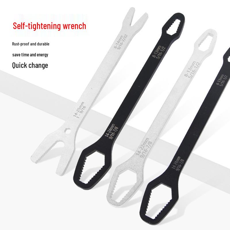 Multi-Purpose 8-22mm Self-Tightening Double-Head Wrench: Box-End & Open-End