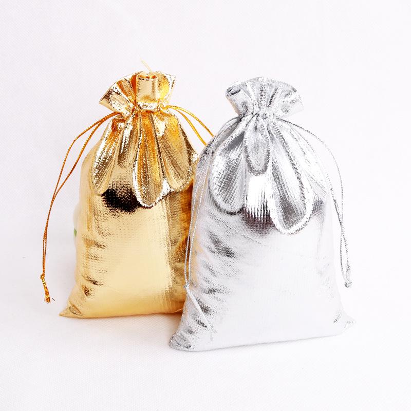 Gold & Silver Satin Jewelry Pouches - Dustproof Drawstring Gift Bags
