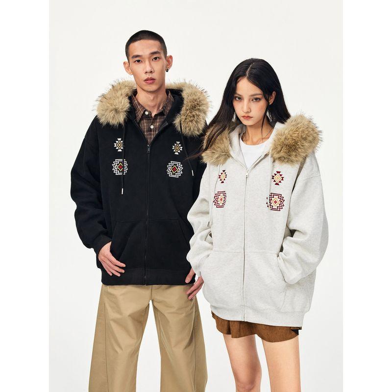 Jungle Tiger Ethnic Style Detachable Fur Collar Hooded Sweatshirt for Men and Women 2026 Spring New Jacket Couple Tops