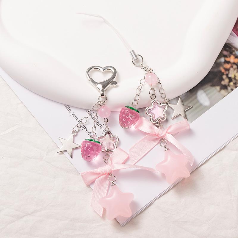 Květinová hvězda s korálky na telefon & Klíčenka se jahodovou mašlí
