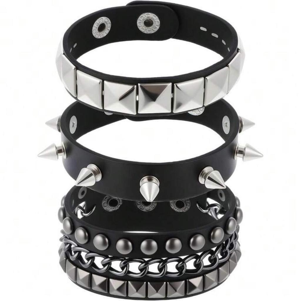 Evropský & Americký Punk Rock Nýtovaný Kožený Náramek Set: Gotický Párový Třídílný Náramek