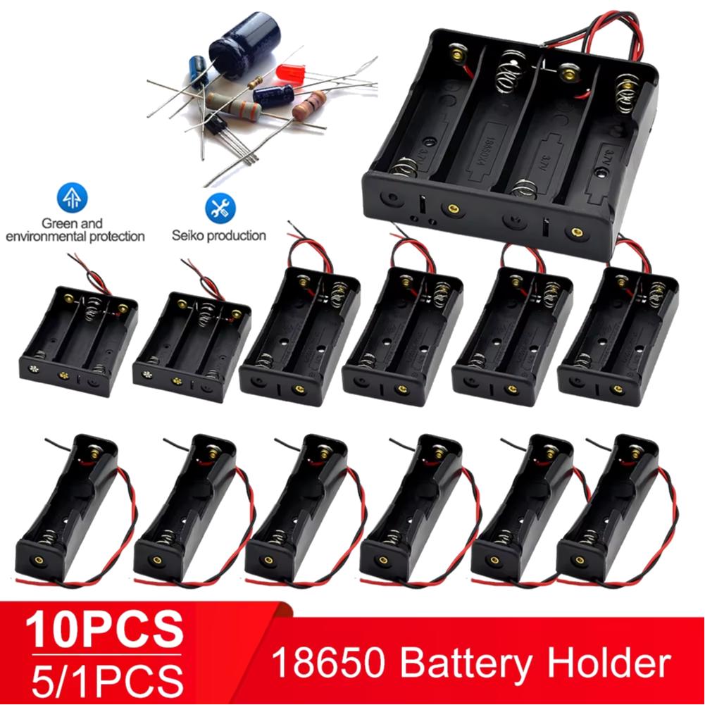 10/5/1PCS 1 2 3 4 Slot 18650 Battery Holder Power Bank with Wire Lead Plastic Battery Storage Box Case for 18650 3.7V Battery