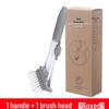 Multifunkční hydraulický kartáč na hrnce s dlouhou rukojetí a dávkovačem tekutiny pro mytí nádobí s nepřilnavým povrchem