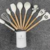 Barevná 11dílná silikonová sada kuchyňského náčiní s dřevěnými rukojeťmi