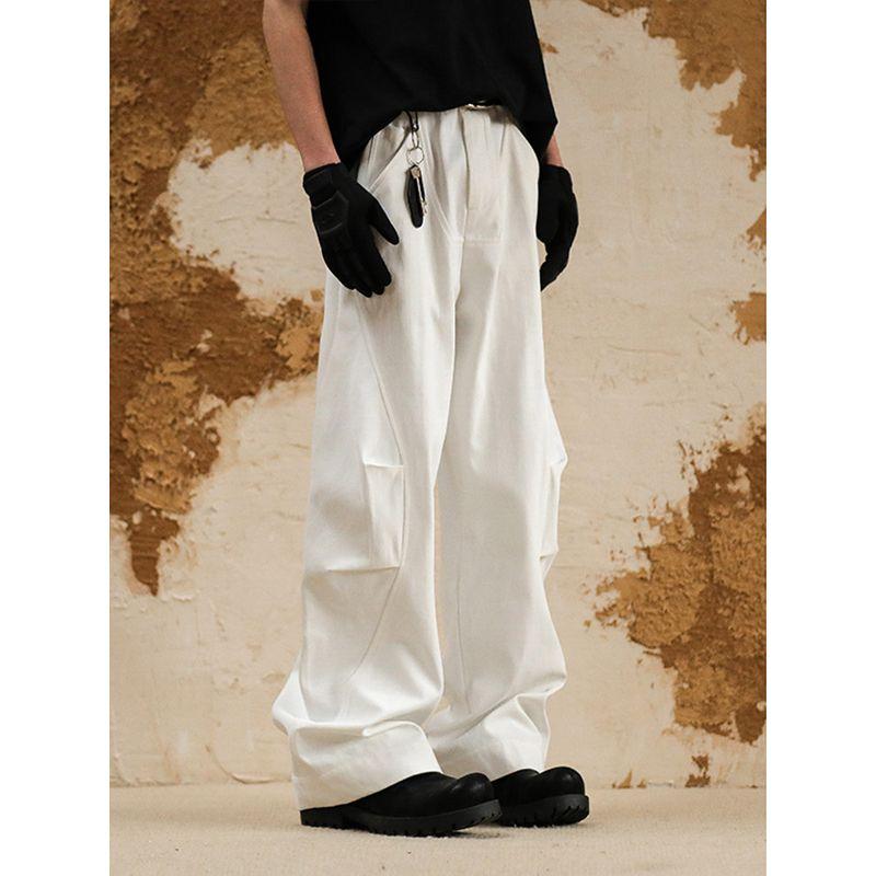 Heavyweight White Pleated Cargo Pants for Men, Winter American-Style Design, Patchwork Wide-Leg Pants, High-Street Versatile Casual Trousers
