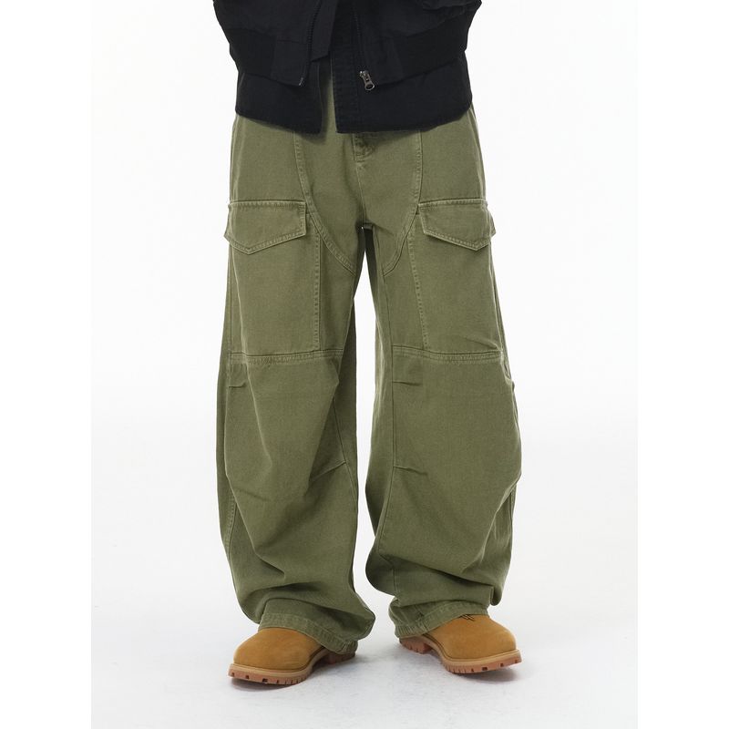 American-Style Multi-Pocket Cargo Pants for Men, Army Green, 2025 New Autumn Trendy Brand, Retro Loose Fit, Curved Knife Casual Pants for Men