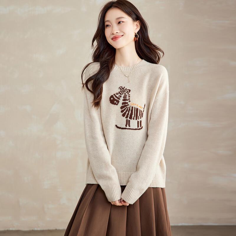 Srcr Women's Thick 100% Cashmere Zebra Jacquard Sweater