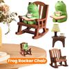 Roztomilá léčivá malá dekorace Roztomilá mini figurka žabky z pryskyřice Design houpacího křesla s knihou Káva Domácí Ložnice Dekorace do kanceláře