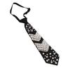Adjustable Length Pretied Silk Neck Tie with Pearls Rhinestones Embellishment Black Necktie for Men Women Formal Wear