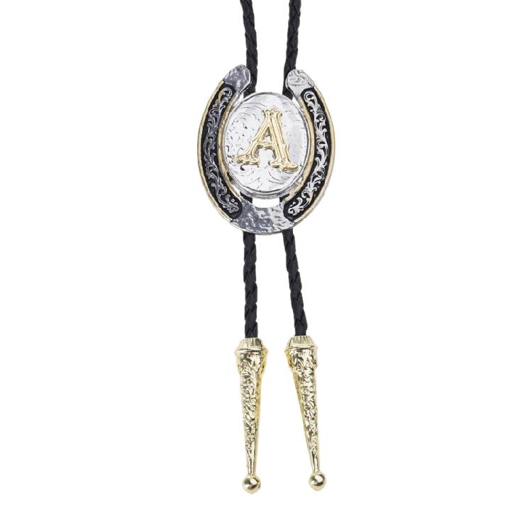Tribal Faux Leather Rope Bolo Tie Unique Western Necktie Metal Initial Letter Necklace for Men and Womens Party Outfits