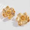 Za Retro Three-Dimensional Metal Large Flower Earrings Light Luxury Gold Flower Stud Earrings Exaggerated Earrings Women