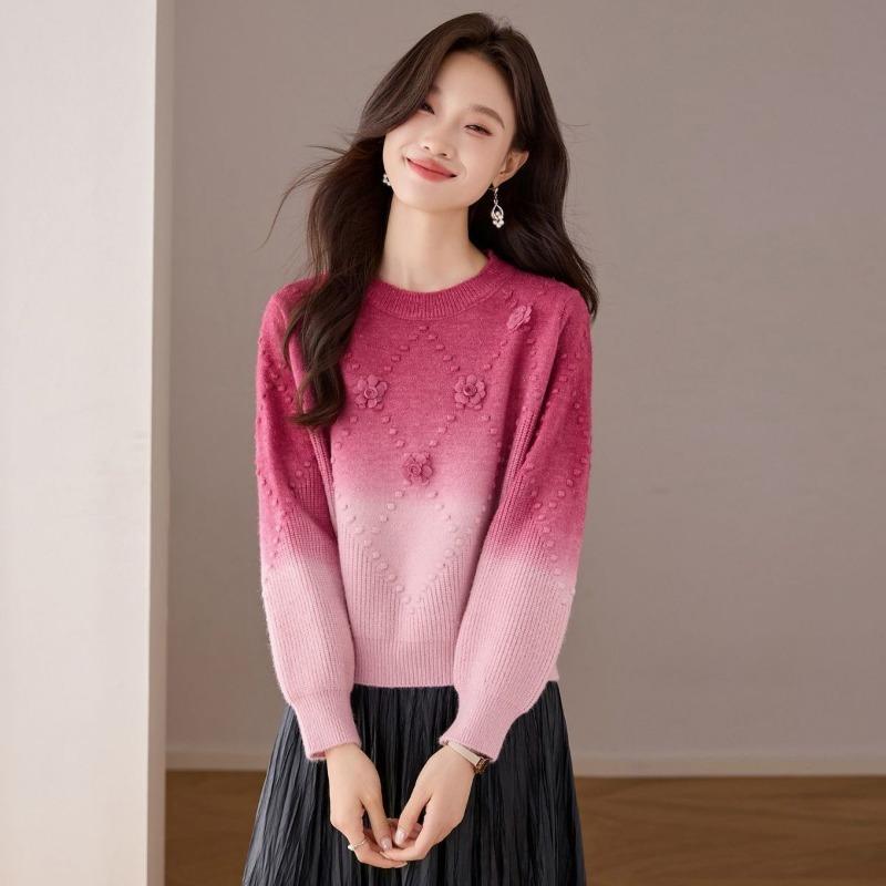 Autumn and Winter Flower Design Tops New Loose Fashionable Round Neck Knitted Sweaters Bottoming Shirts