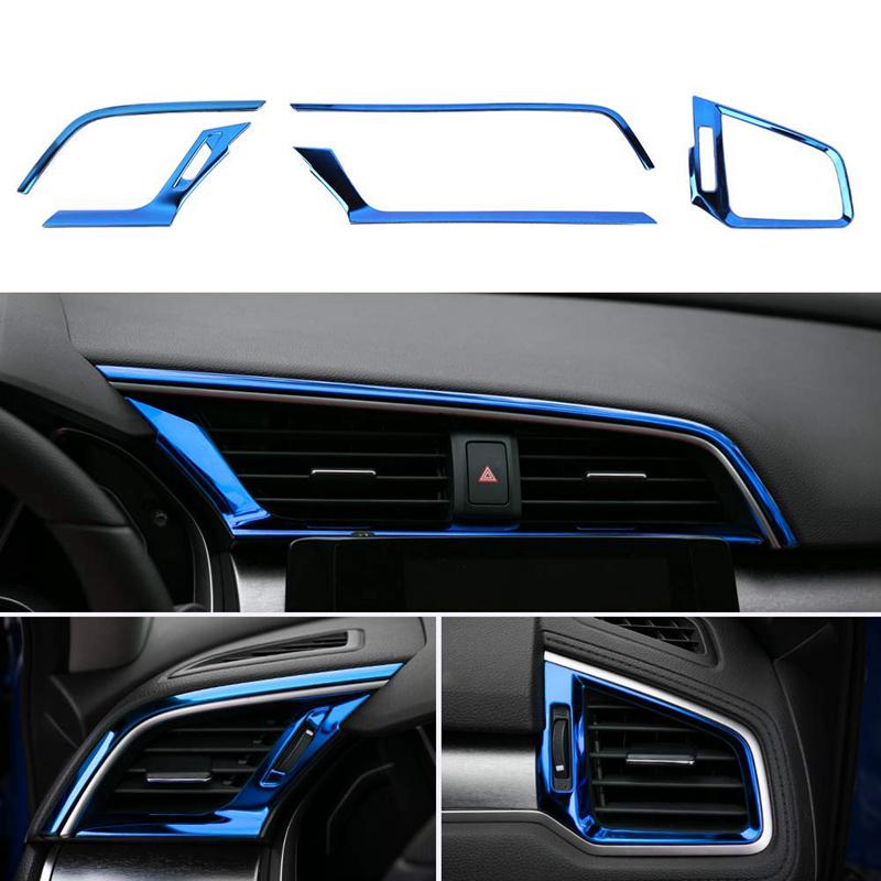 Dekorace vývodu vzduchu centrálního ovládání Nálepka lemování krytu Nerezová ocel pro Hondu Civic 10. generace 2018 2017 2016, modrá