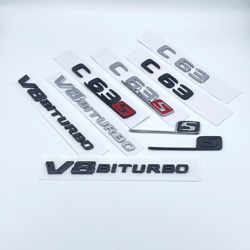 3D Matte Black Letters V8 Biturbo 4matic Emblém pro Mercedes Benz AMG C63 C63S Coupe Blatník kufru Typový štítek s logem