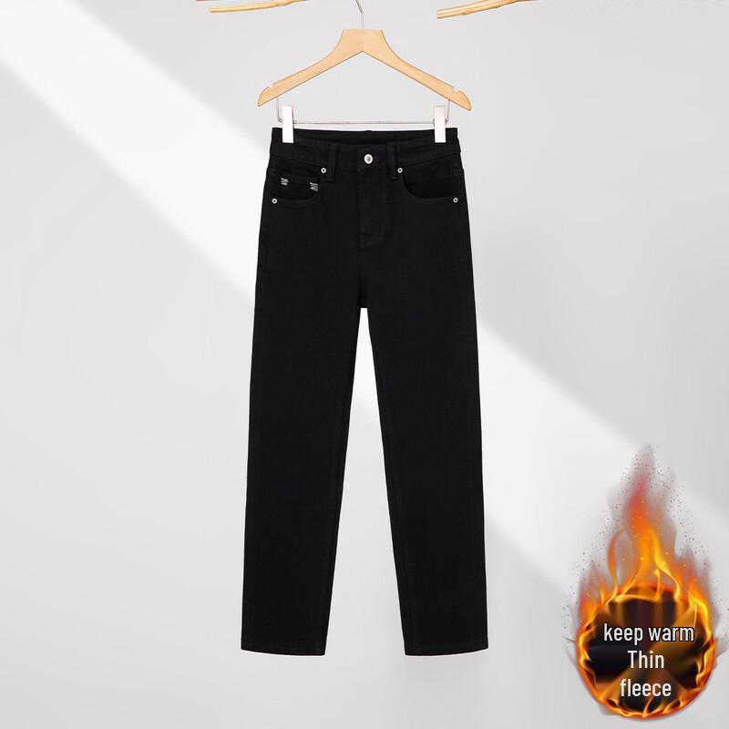 RAIN.CUN Women's Thin Fleece Lined Straight Leg Jeans
