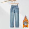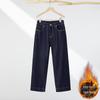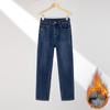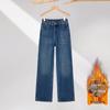RAIN.CUN Women's Fleece-Lined High-Waist Straight Denim Jeans