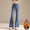 RAIN.CUN Women's High-Waist Loose Fleece Lined Wide-Leg Jeans