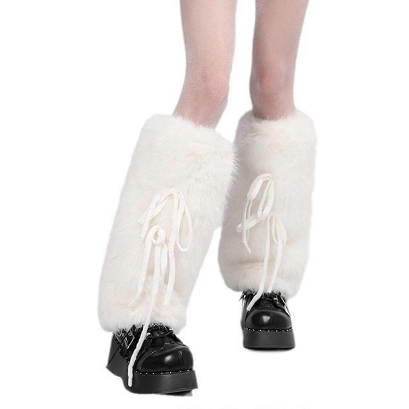 Plush Leg Covers with Sweet Bows Ties Subcultures Harajuku Footless Socks for Women Teen Girls Thick Fuzzy Boot Toppers