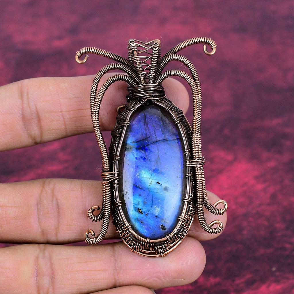 Labradorite Gemstone Pendant Handmade Copper Wire Wrapped Pendant Decent Jewelry