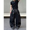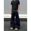 Blaexit American-Style Denim Black Jeans for Men, Vintage Baggy Straight-Leg Loose Casual Raw Color Wide-Leg Pants