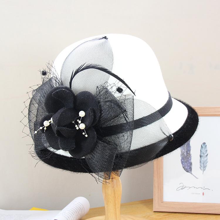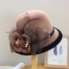 Autumn And Winter New Wool Woolen Hat Women'S British Retro Mesh Flower Pot Hat Wool Top Hat Versatile Dome Hat