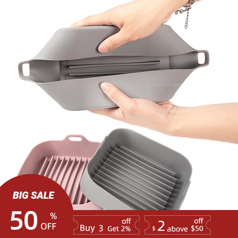 Silicone Air Fryer Pot Square round Airfryers Oven Baking Tray Bread Fried Chicken Pizza Basket Mat Kitchen Accessory