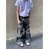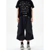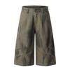 Blaeixt American-Style Pleated Design Curved Hem Cropped Pants for Men, Loose Casual Vintage Black Cargo Shorts