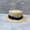 Light Luxury Small Edge Handmade Fine Raffia Grass Flat Top Flat Brim Straw Hat Women'S Summer Travel Simple Sunscreen Holiday Visor