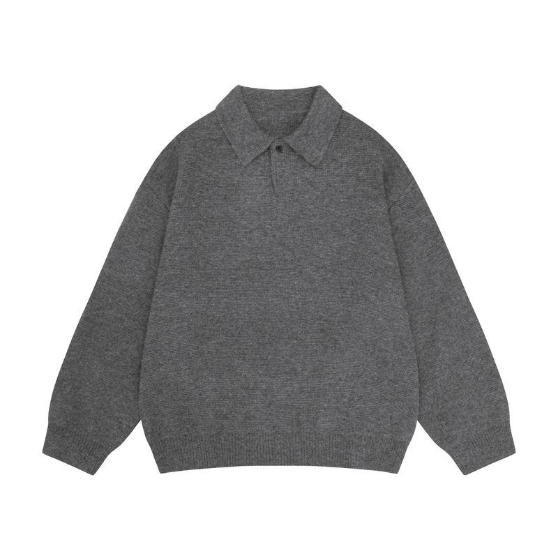 Blaexit Cashmere Blend Polo Collar Sweater Men's Winter Thickened Cleanfit Gray Lapel Knitwear