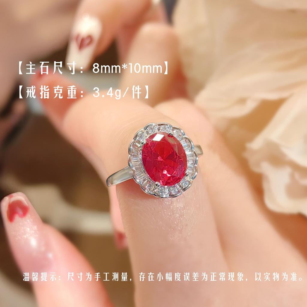 Fashion Color Treasure Red Corundum Ring Light Luxury Temperament Versatile Drainage High Carbon Diamond Women'S Ring