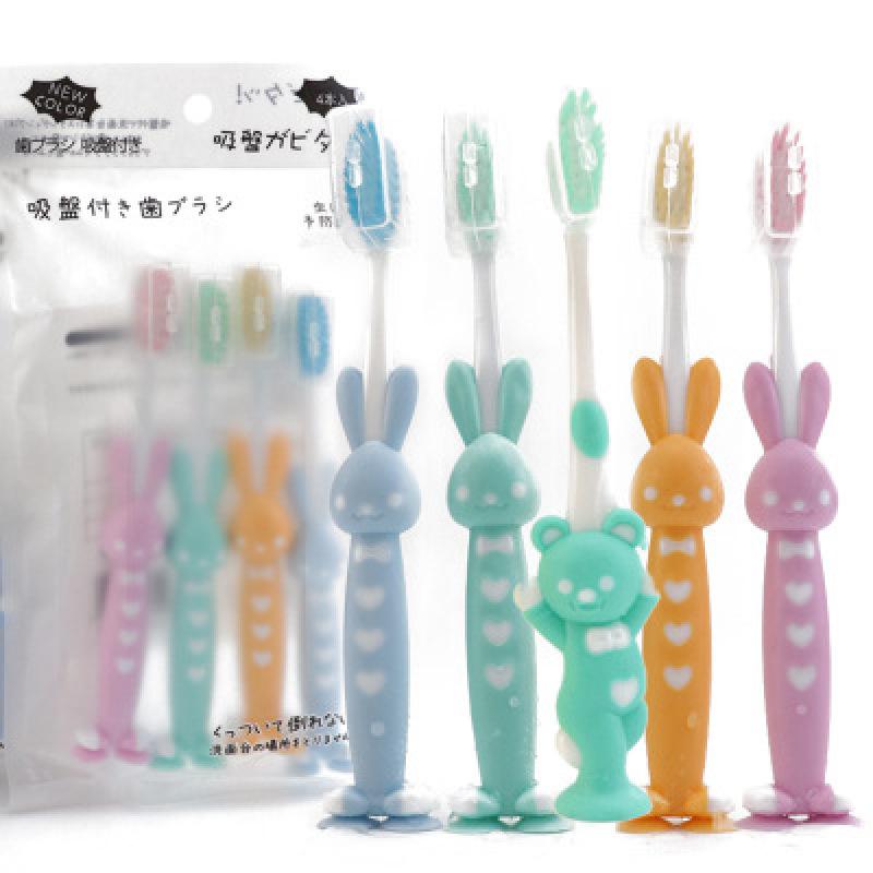 4pcs/Set Baby Kids Training Soft-Bristled Suction Stand Toothbrushes for Kids Children with Thick Ru