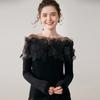 Wrap yourself in luxury with this exquisite cashmere sweater, featuring a slim fit and long sleeves for a sleek, elegant look. Adorned with hand-embroidered flowers, this unique piece showcases an alluring one-shoulder design and a striking three-dimensional feather detail. Crafted entirely from the finest cashmere, it offers unparalleled softness and warmth, making it the perfect combination of sophistication and sensual style.