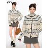 Shiyiyue Fair Isle New Year Cardigan Women's Autumn and Winter Lazy Style Loose Coat Round Neck Casual Knitted Sweater