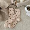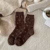 Dark Gray Vintage Thickened Warm Children'S Winter Floral Piles Of Socks Coffee Color Mid-Leg Socks Snow Boots Wool Socks