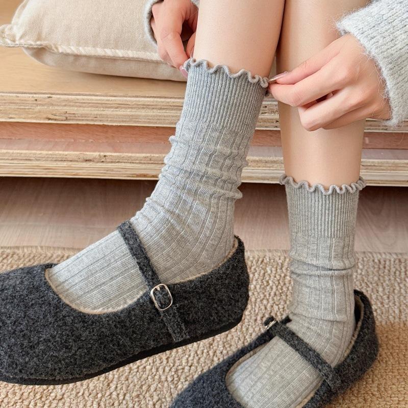 Autumn Sweet Fungus Edge Socks Soft And Glutinous, Versatile Sweat-Absorbing Breathable Pile Socks Trendy Cotton Socks