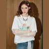 Coolhut Fun Print Graffiti Patchwork Lace Sleeves Drop Shoulder Loose Cartoon 2025 Summer Women's T-Shirt