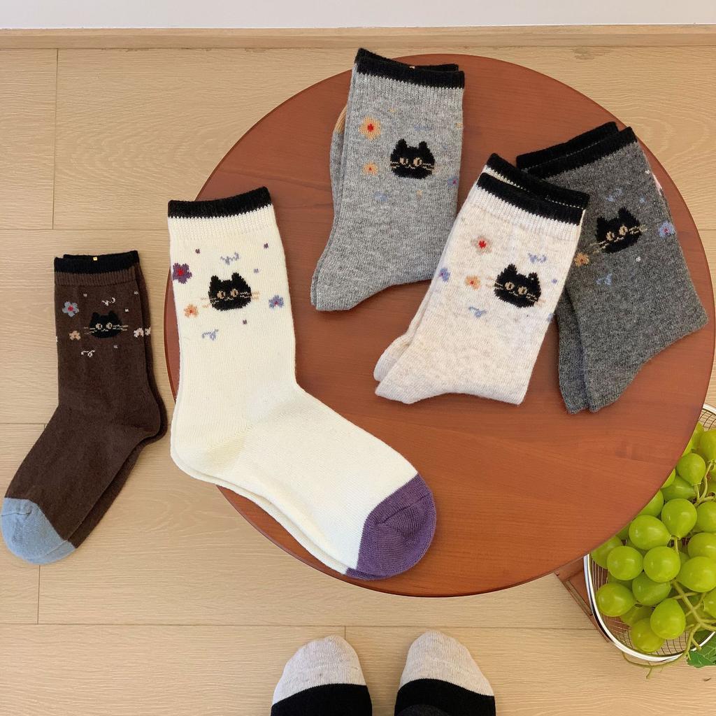 Warm Wool Socks, Women'S Season, Thickened Fleece Mid-Leg Socks, Cute Cat Cartoon Warm Stockings