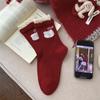 Super Cute Big Red Socks Women'S Season Pure Cotton Mid-Leg Socks Cartoon Polka Dot Puppy Korean Pile Socks