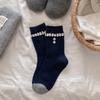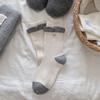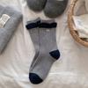 Korean Gray And Blue Button Wool Socks, Bud Mouth Striped Egg Medium Tube Socks, Love Versatile Stacking Socks