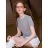 Coolhut Light Gray American Retro Cut Out Short Sleeve T-shirt New Arrival Women's Casual Versatile Slimming Top