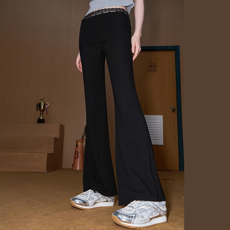 Coolhut Lace Splicing Draped Flared Black Slim-Fit Versatile New Fashion Slimming Women's Casual Pants