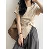 Coolhut Asymmetrical Twisted Raglan Sleeves Round Neck Design Sleeveless Pleated 2025 Summer Women's T-Shirt Niche