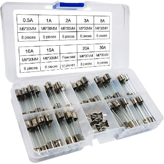 0.5A-30A 250V Fast-Blow Glass Tube Fuses Quick Blow Car Fuses Assorted Kit With Plastic Box 72Pcs 6X30Mm 10Pcs Fuse Seat Fast Acting For Car