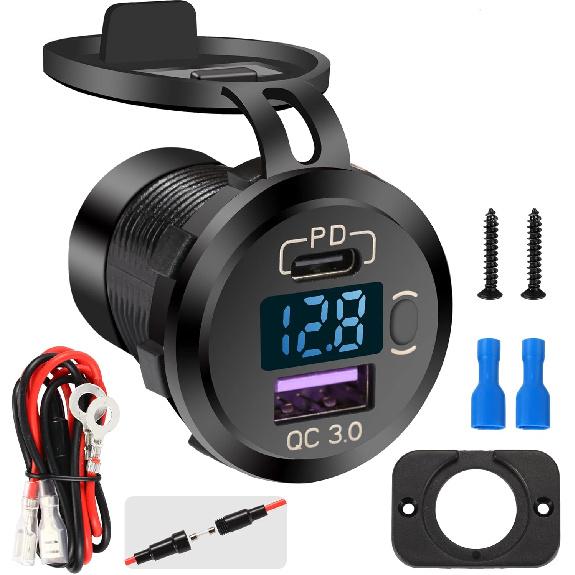 Quick Charge 3.0 Dual USB Car Charger Socket With LED Voltmeter And ON Off Switch Fused Wire Kit 12V/24V PD QC3.0 Fast Charge USB Outlet For Car Boat