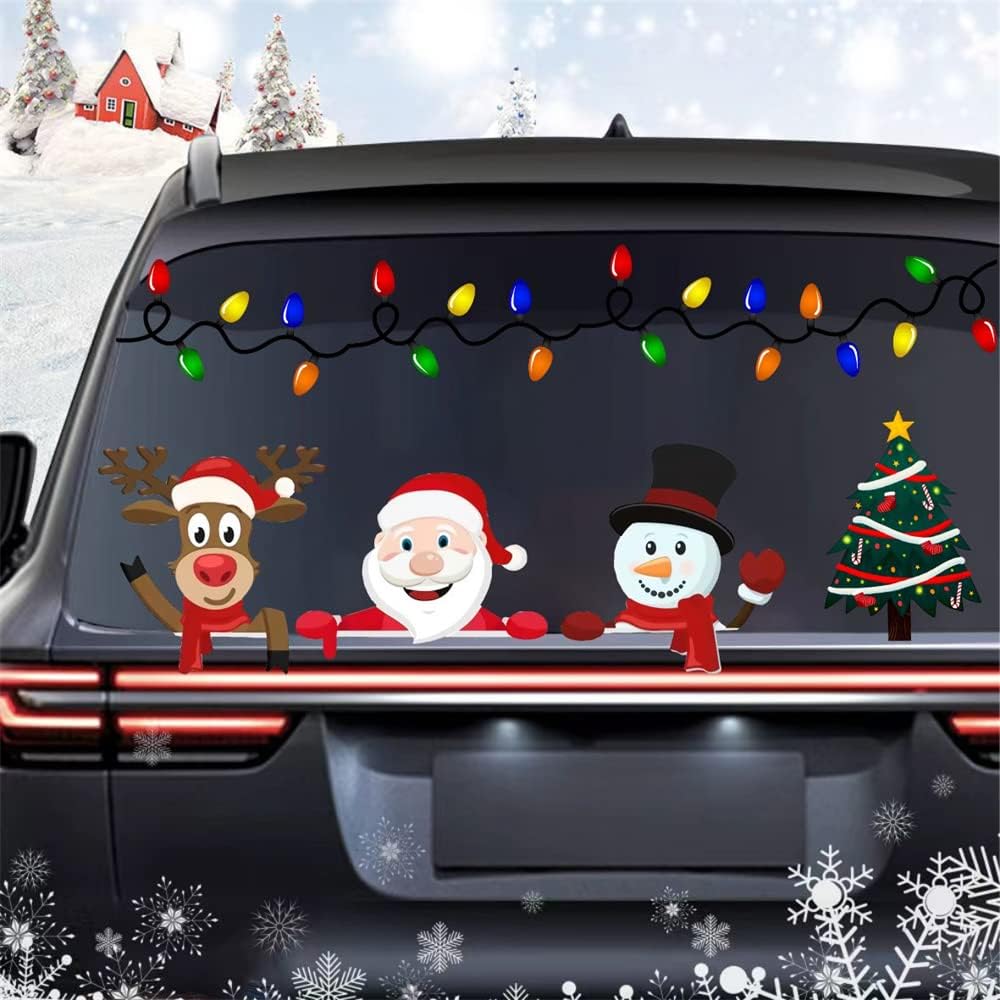 Christmas Peeking Reflective Car Decals Santa Claus Reindeer Snowman Funny Car Stickers For Auto,SUV,Truck, Refrigerator Window Indoor And Outdoor