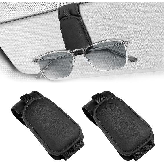 Teraves 2 Pack Sunglass Holder Clip For Car Visor, Upgrade Magnetic Leather Visor Sunglasses Clip, Easy To Hold Your Glasses Eyeglasses
