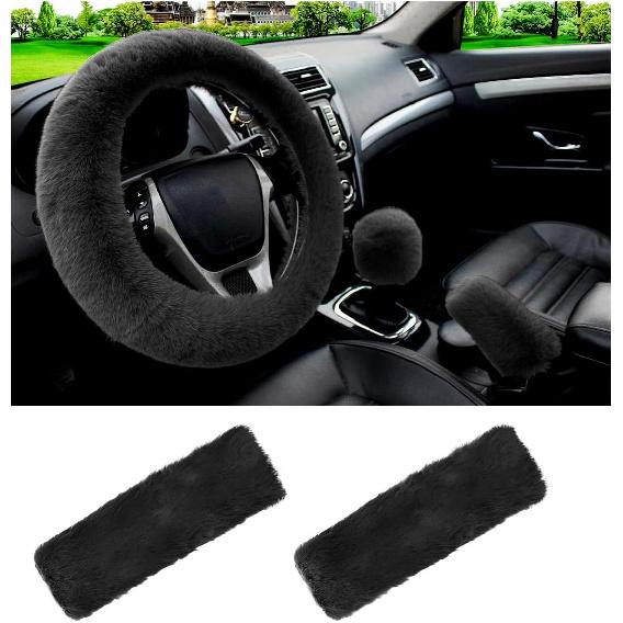 5 PCS Fluffy Steering Wheel Covers Set, Faux Wool Steering Wheel Cover & Handbrake Cover & Gear Shift Cover & 2 Seat Belt Shoulder Pads, Universal