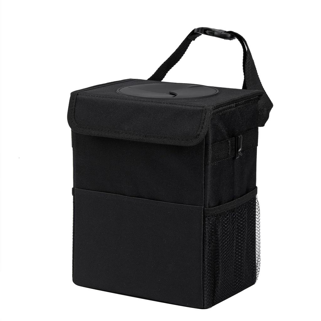 Car Garbage Can With Lid Leak Proof Vehicle Trash Can 3 Storage Pockets Hanging Waterproof Car Trash Bag For SUV Black
