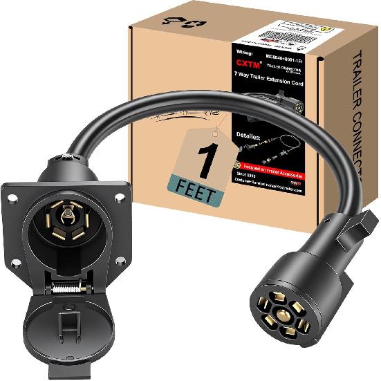 7-Way Trailer Extension Cord Wire Cable, 1 Feet 7 Way Trailer Extension Cable, Wiring Harness 7 Prong Tow Wiring Connector Cord 7 Blade Trailer