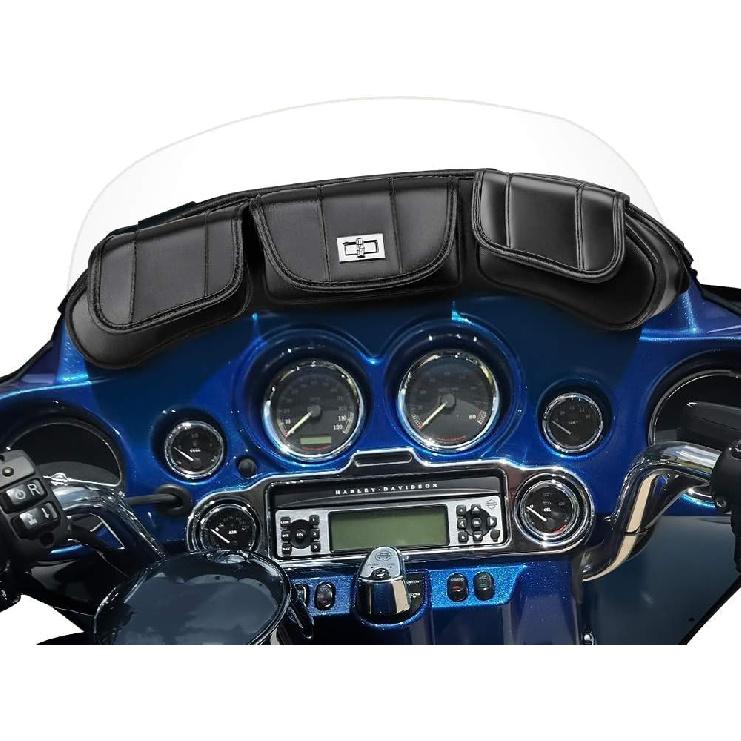 KEMIMOTO Windshield Bags Batwing Fairing 3 Pouches Pocket Compatible With 1996 1997 1998-2013 Touring Street Glide Road Glide FLHX FLH